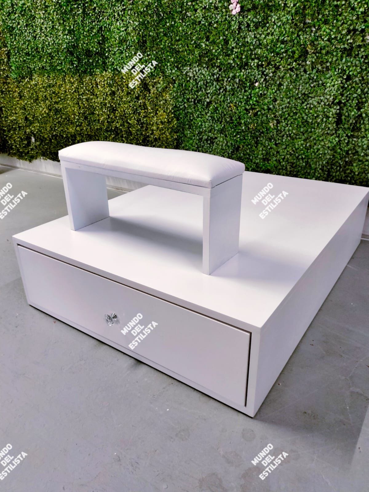 Base para pedicure spa sin sillón. Incluye descansa pie acolchonado y amplio cajón. Disponible en diferentes materiales y colores.