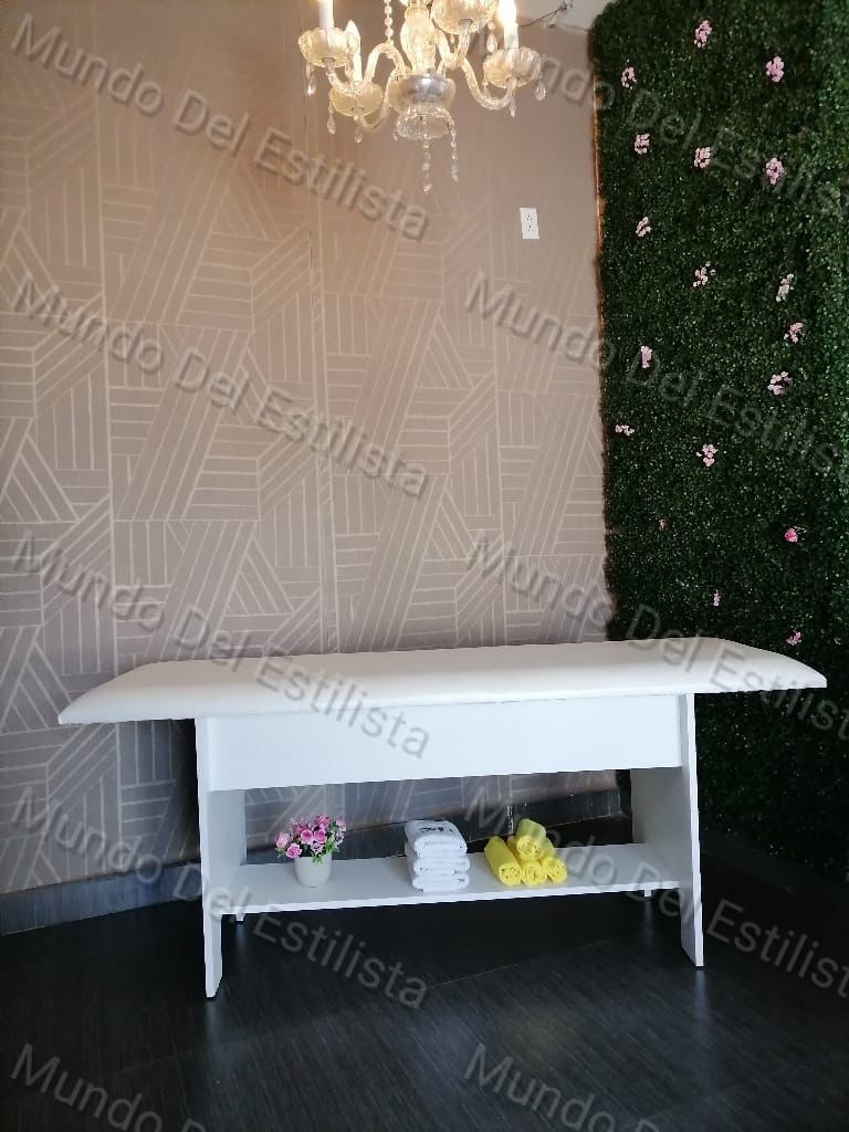 Camilla corea. Cama fija para extensiones de pestañas o masaje, melamina disponible en negro, blanco o rosa. Vinil en gama de color.