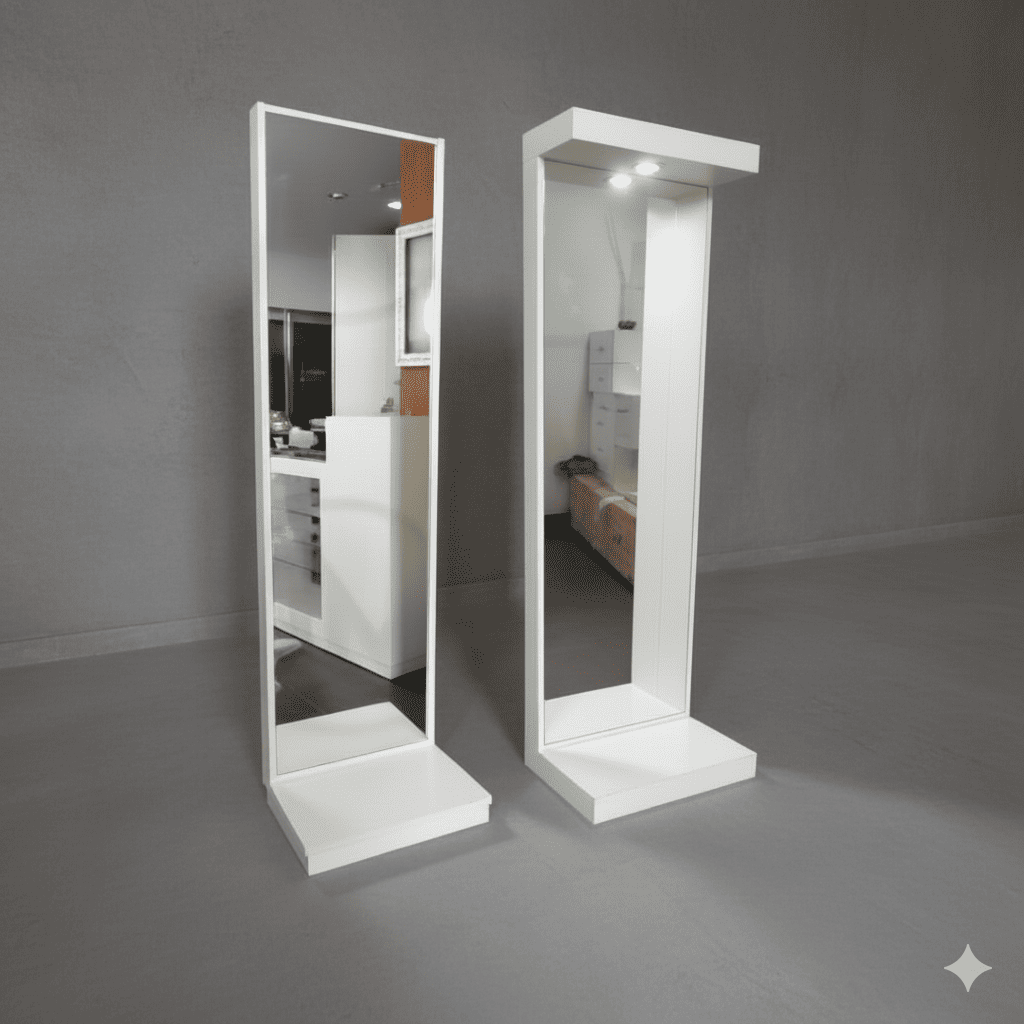 Espejo de cuerpo completo modelo Isabel. Resistente y duradero espejo con o sin luz. Disponible en diferentes materiales y colores.