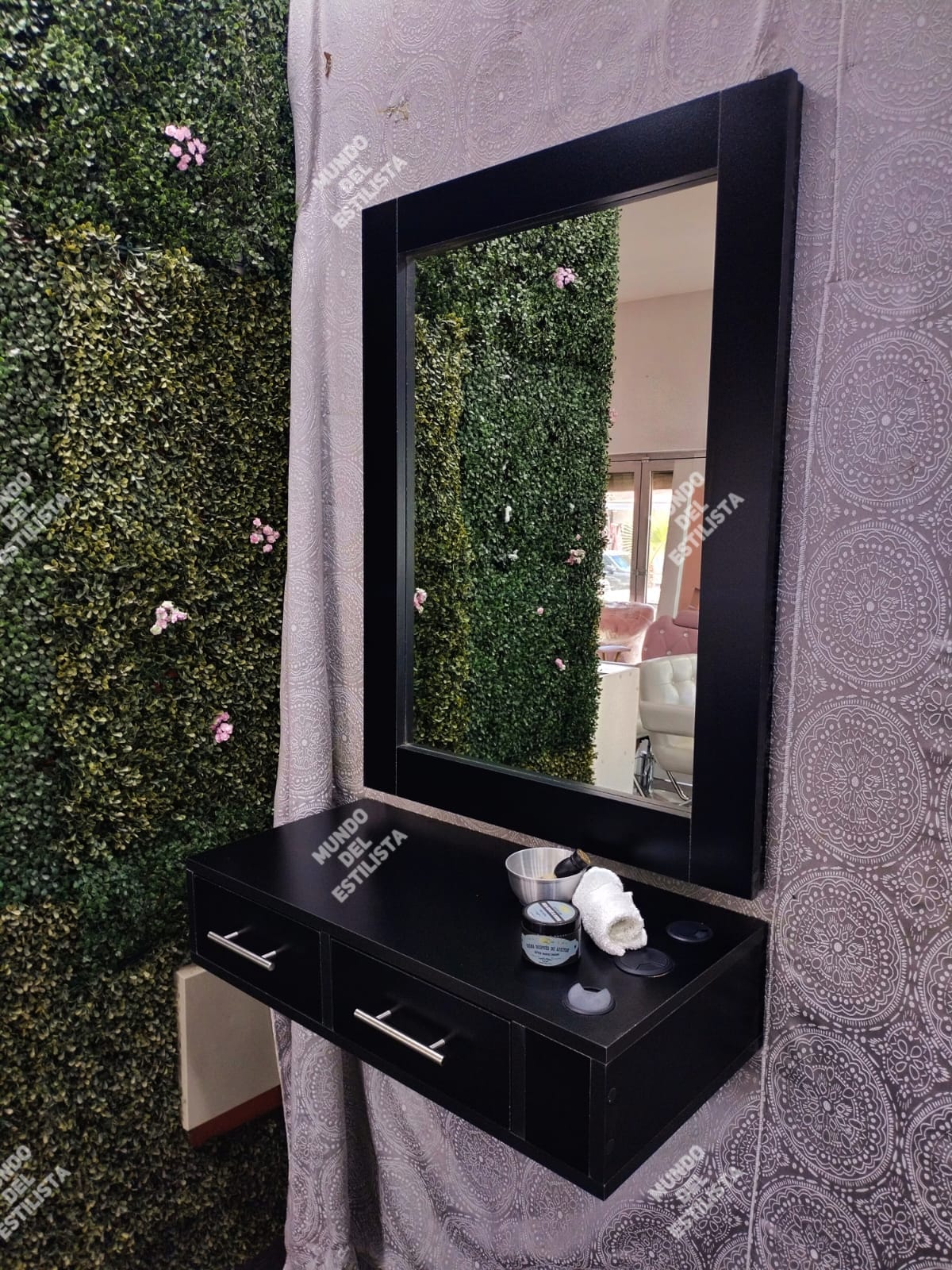 Estación Flotante de Barberia modelo Clasica. Estación con espejo, dos amplios cajones y portaherramientas. Disponible en diferentes materiales y colores.