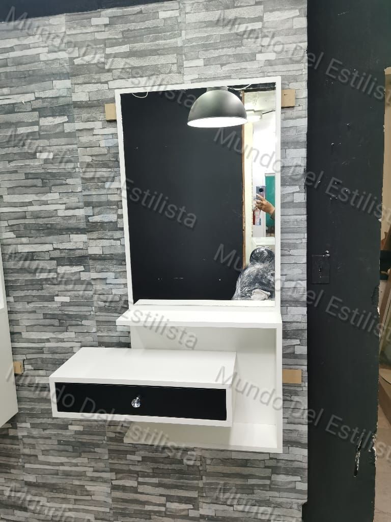 Estación Flotante modelo Marilyn. Estación de espejo con repisa y amplio cajón. Disponible en diferentes materiales y colores.