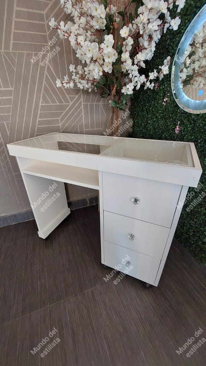 Mesa para uñas modelo Prada. Mesa para manicura con cubierta de cristal de 1/4 de espesor y amplios cajones.