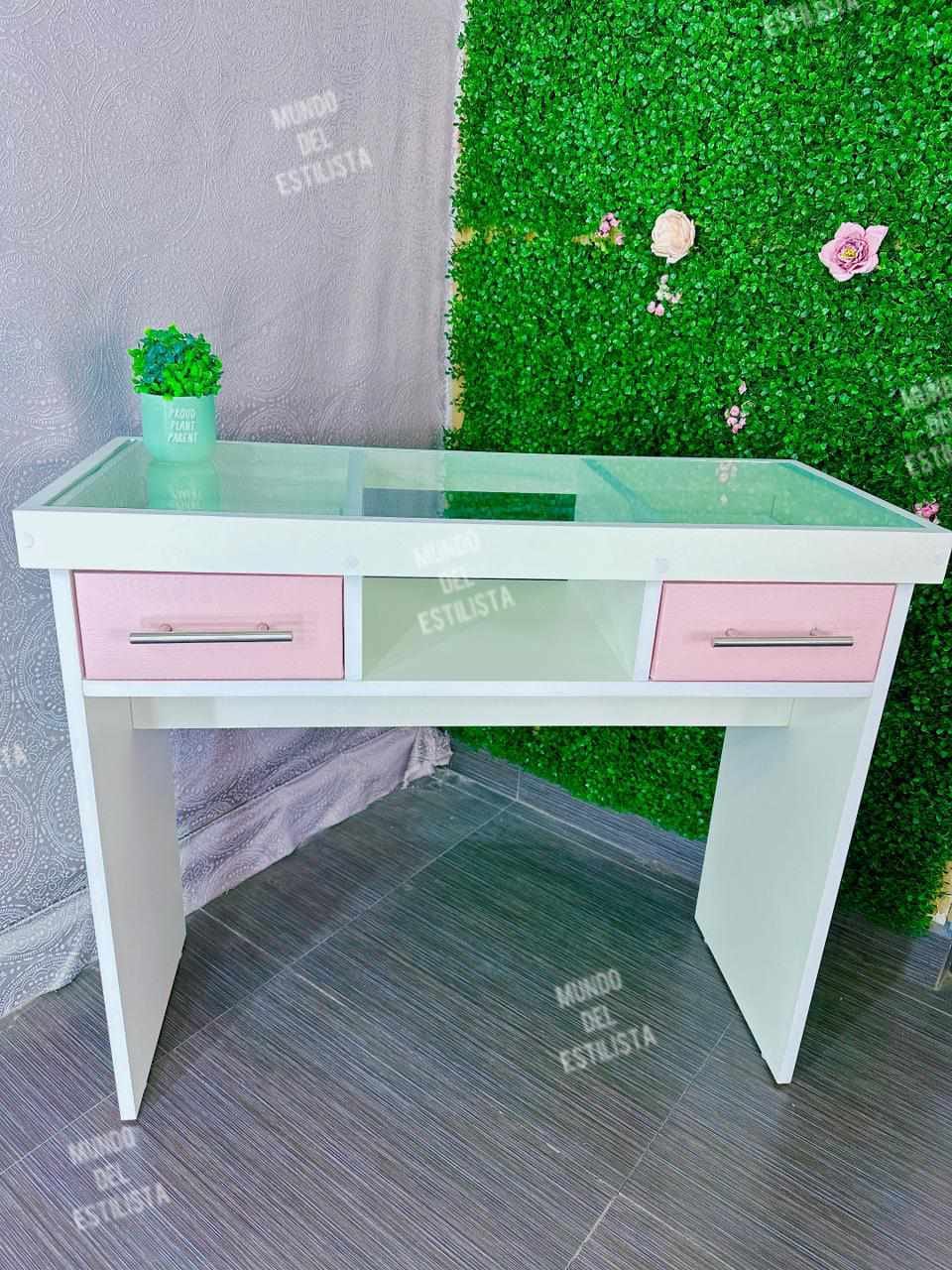 Mesa para uñas modelo París.  Mesa para manicura con cubierta de cristal de 1/4 de espesor y amplios cajones.