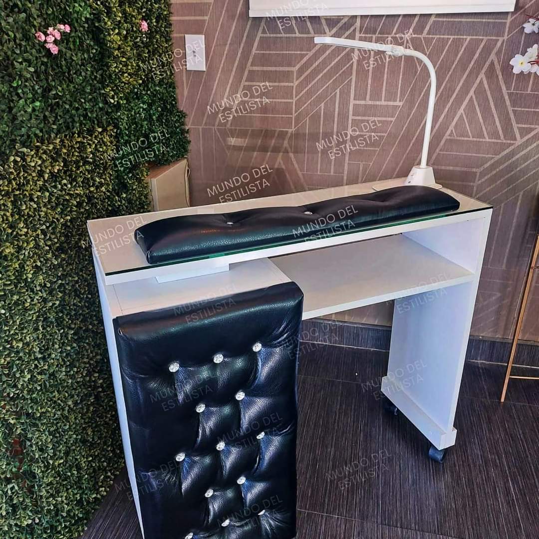 Mesa para uñas modelo Abotonada.  Mesa para manicura abotonadas el vinil puede ser negro blanco o gris.