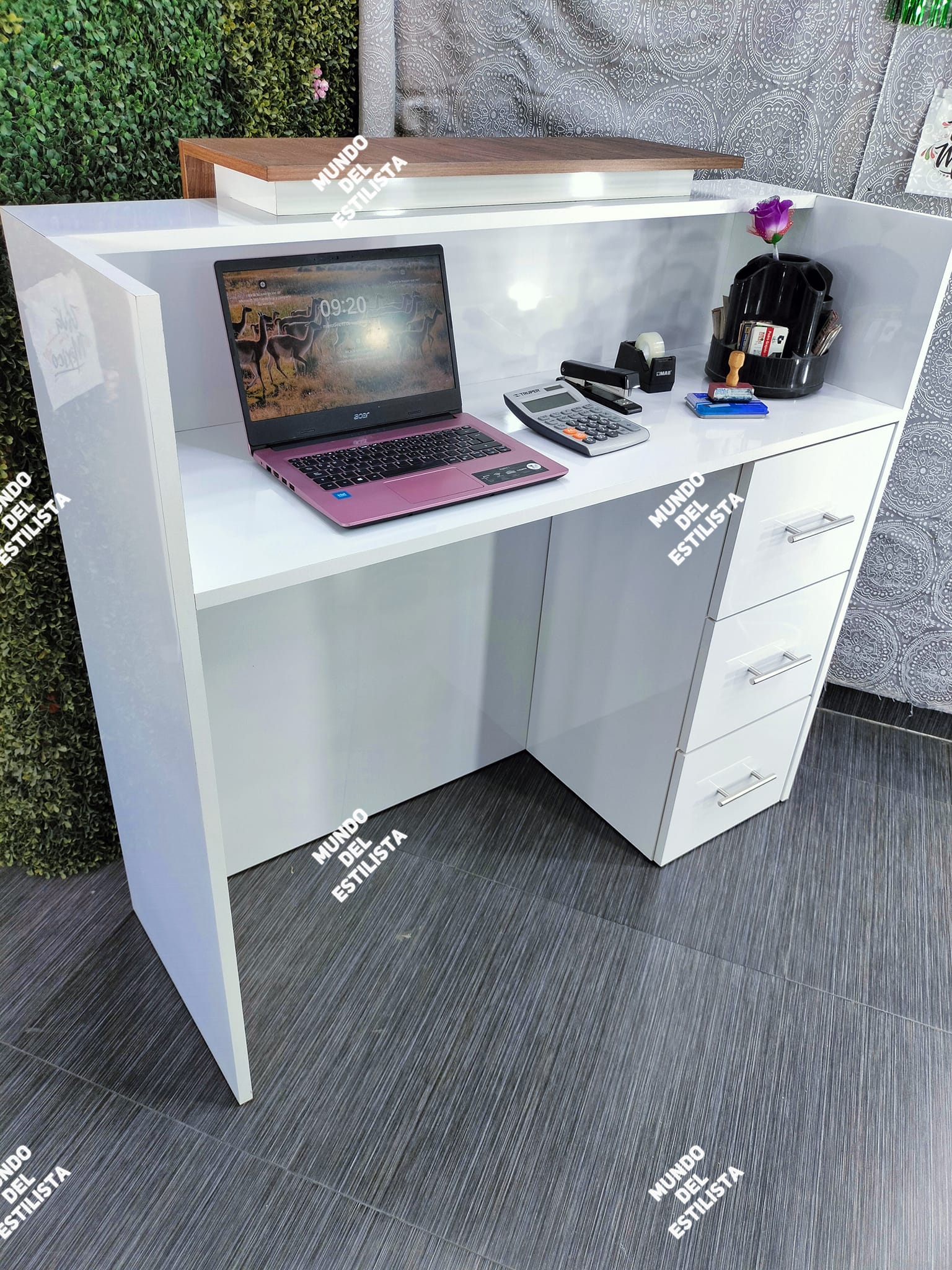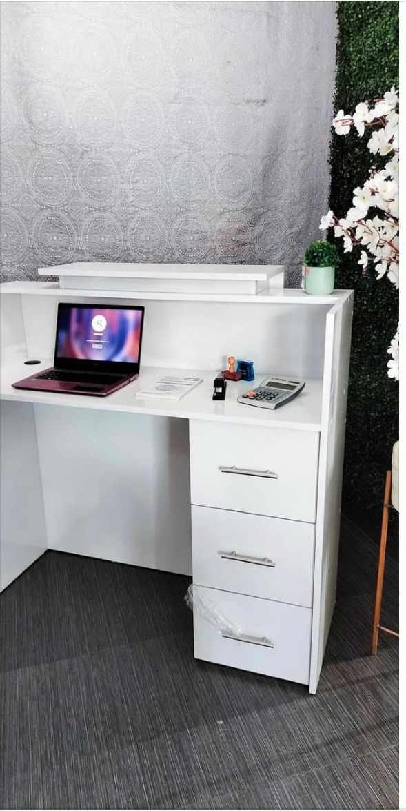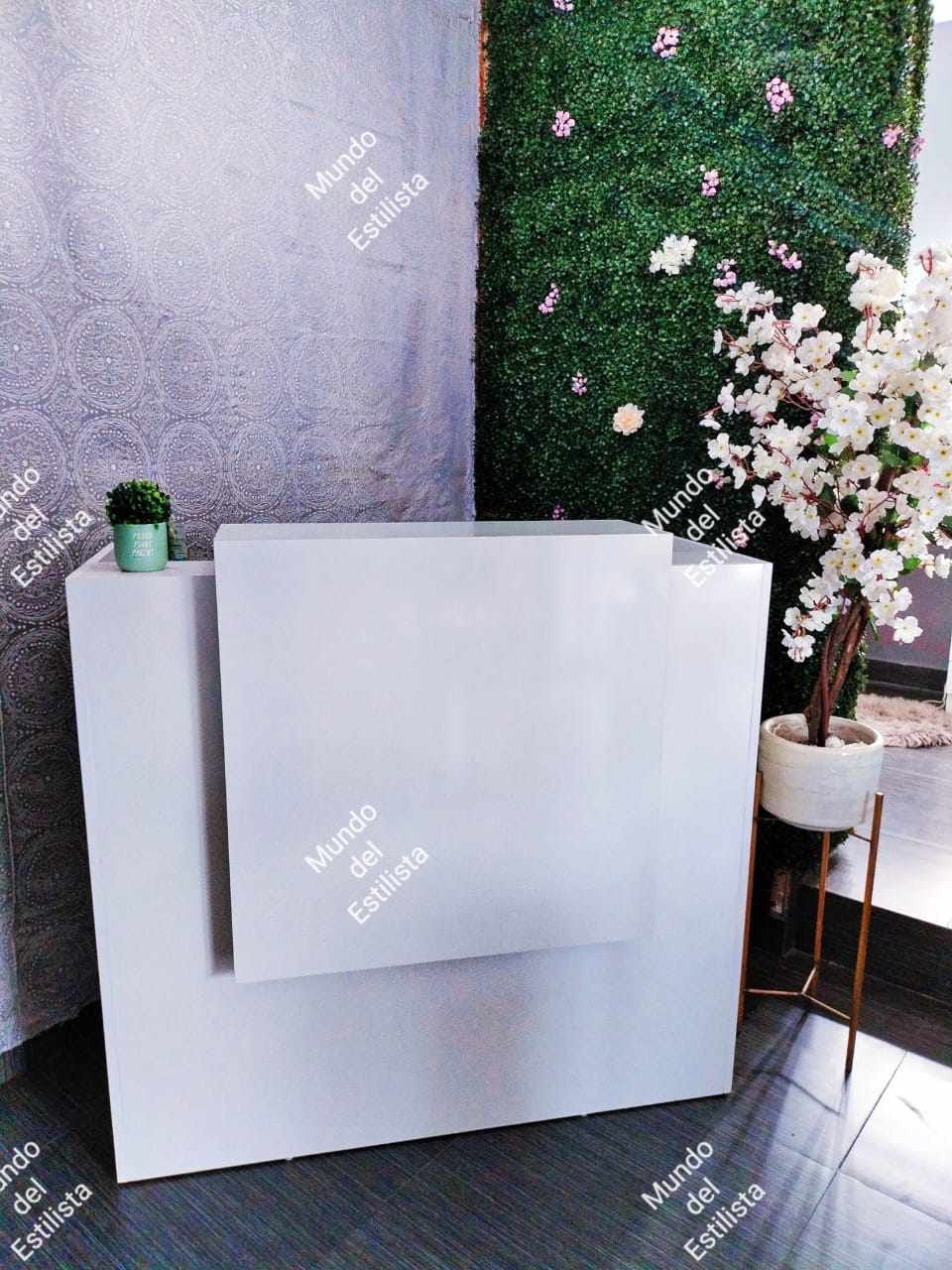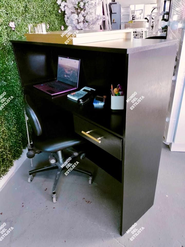 Recepción para estética Sol. Dale la bienvenida a tus clientes con este resistente recibidor para estética con compartimientos y cajones para organizar tu laptop, teléfono, agenda, etc.