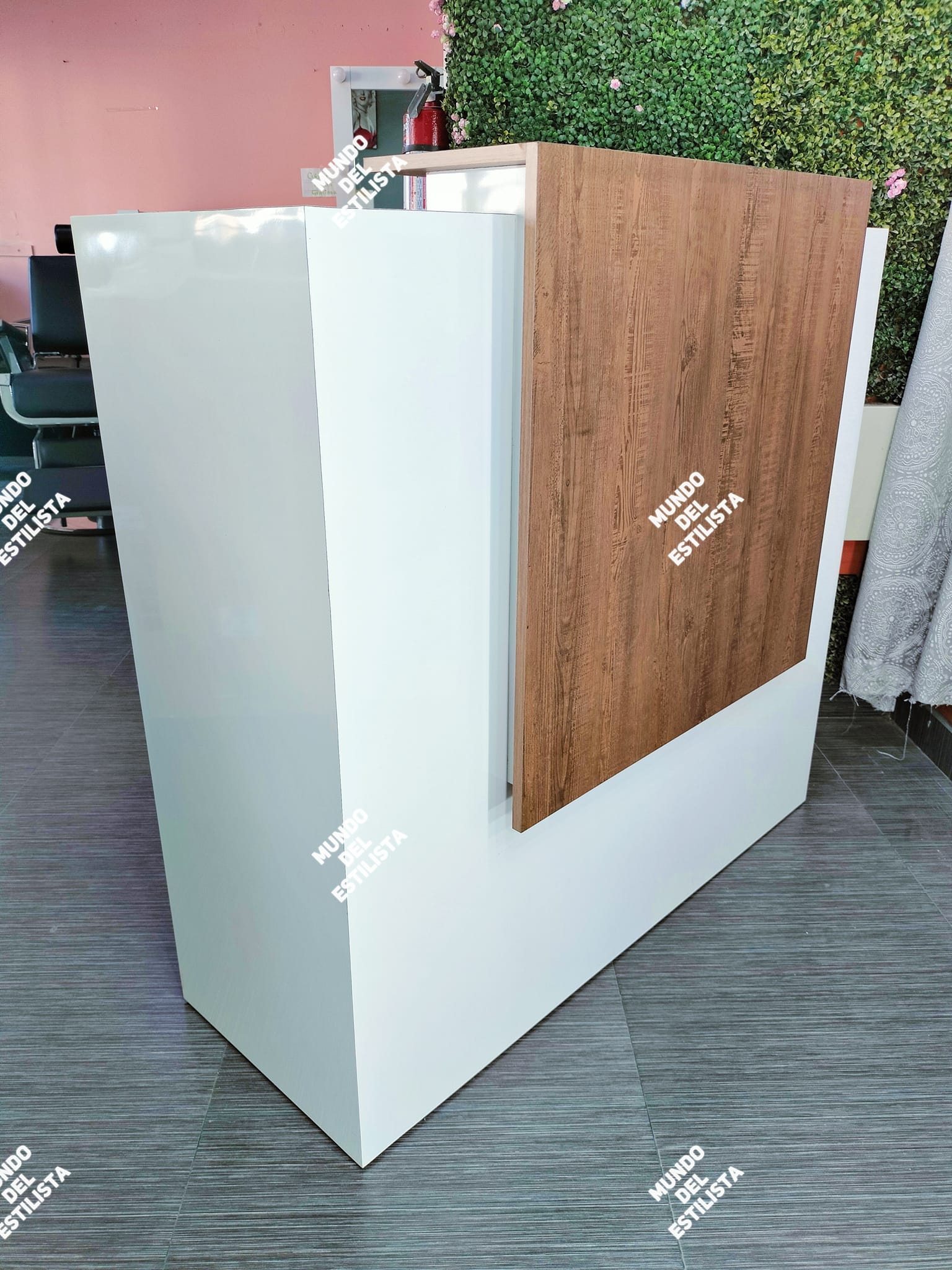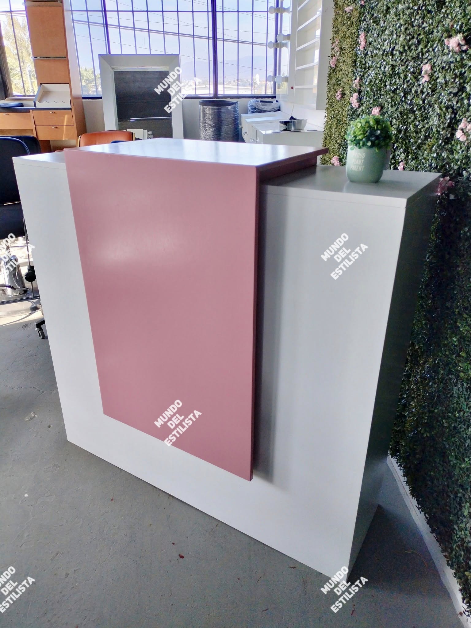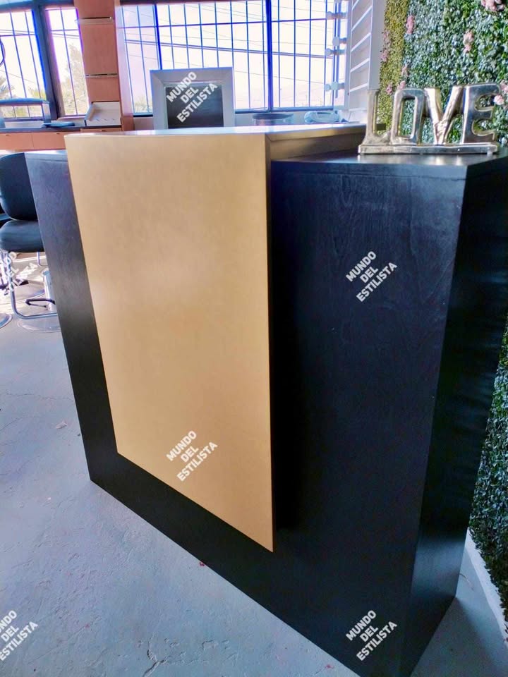 Recepción para estética Sol. Dale la bienvenida a tus clientes con este resistente recibidor para estética con compartimientos y cajones para organizar tu laptop, teléfono, agenda, etc.