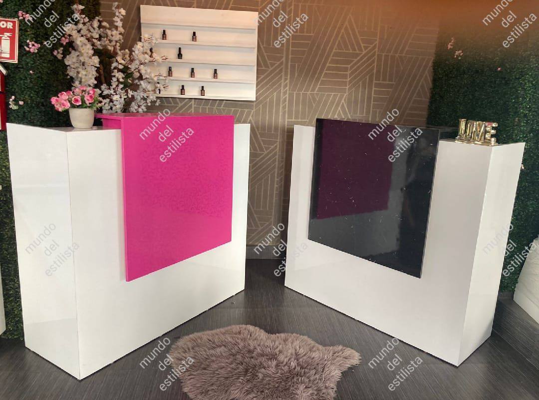 Resistente recepción para estética con compartimientos y cajones. En melamina negra, blanca o gama de color.