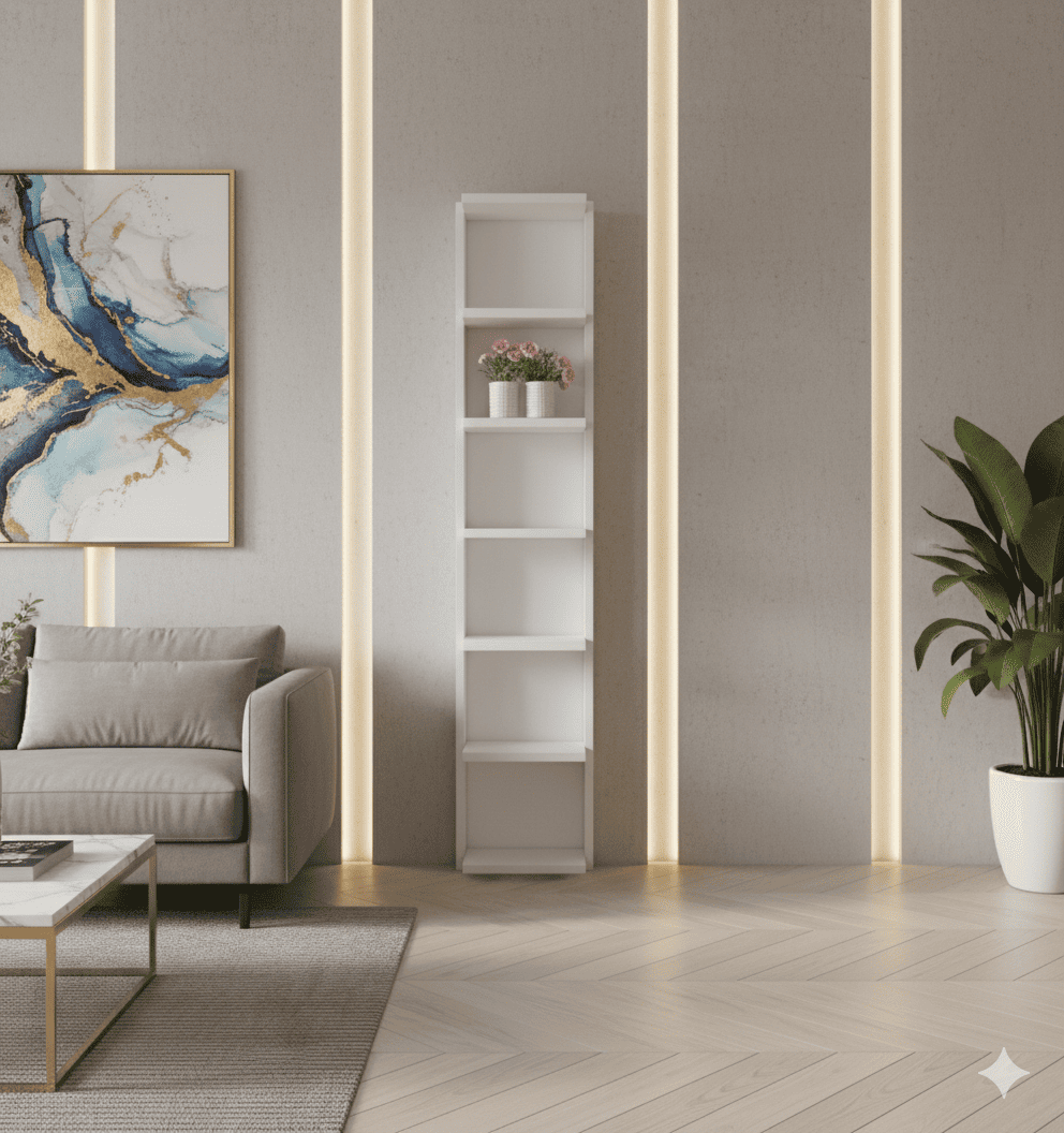 Mueble repisero modelo Princess. Elegante mueble organizador vertical con 6 amplios compartimientos.