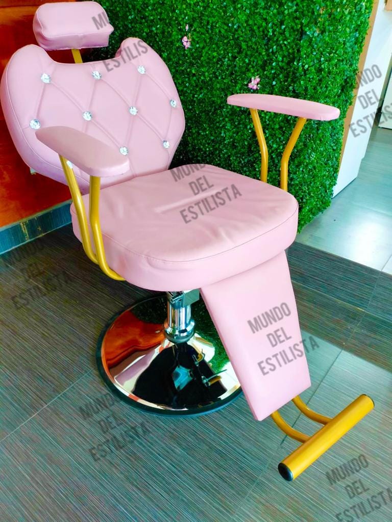 Silla reclinable abotonada. Elegante silla para corte de cabello, reclinable, viene con hidráulico y descansa pie. Disponible en color negro, rosa y blanco.