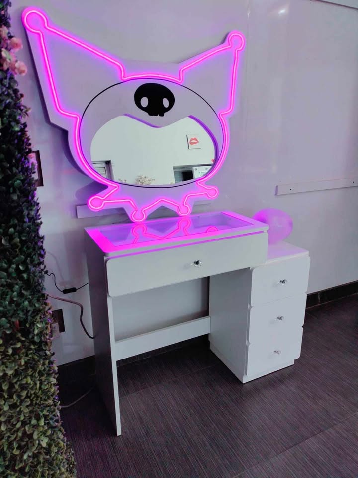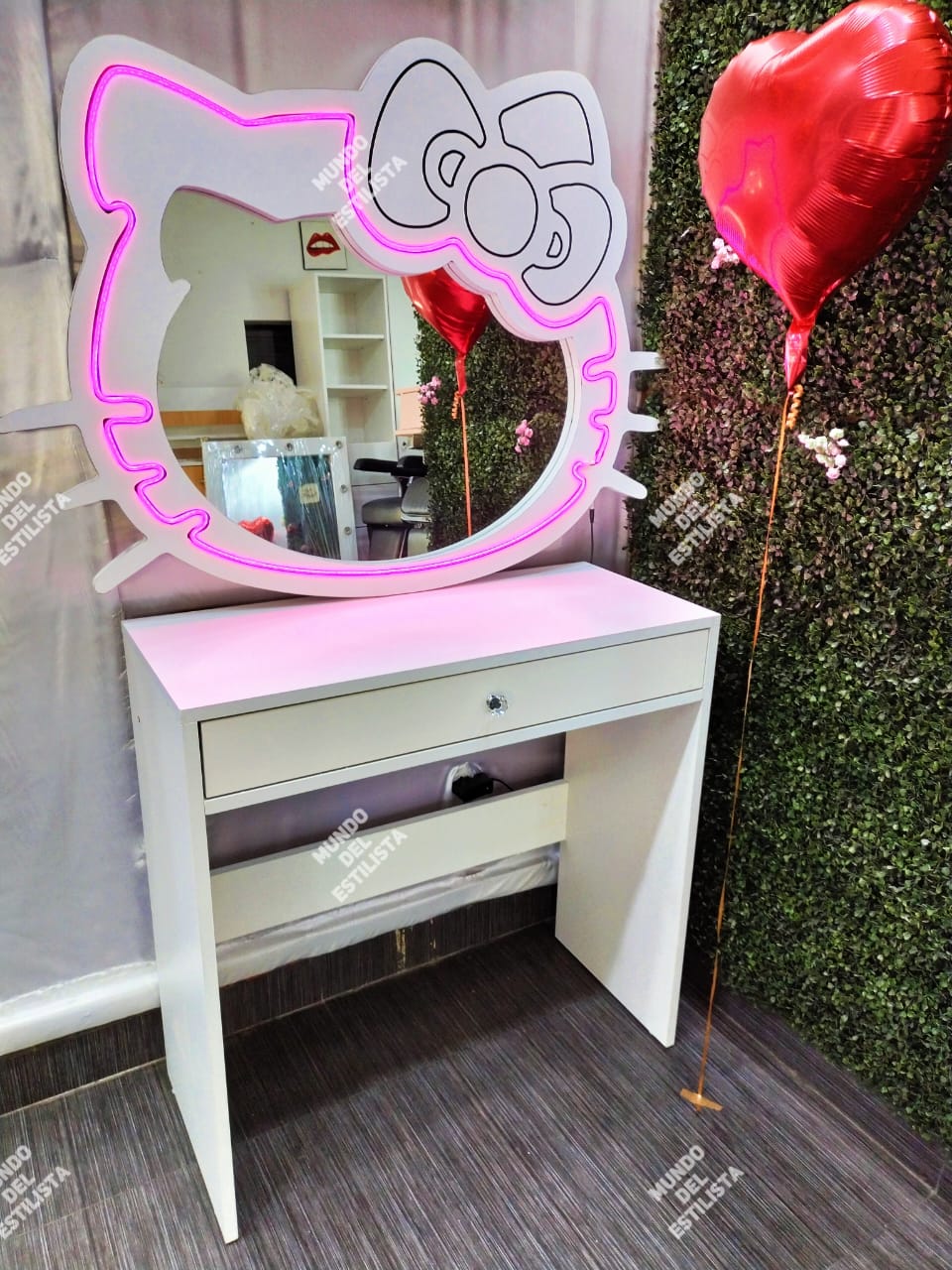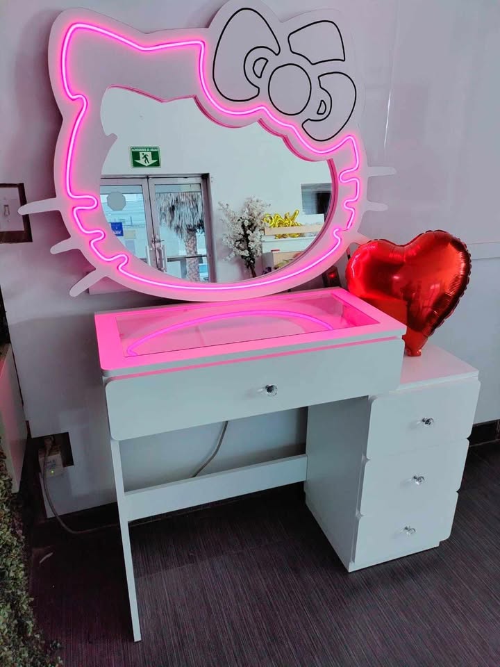 Vanity Hello Kitty, espejo con luz LED. Mesa de cristal y 4 Cajones.
